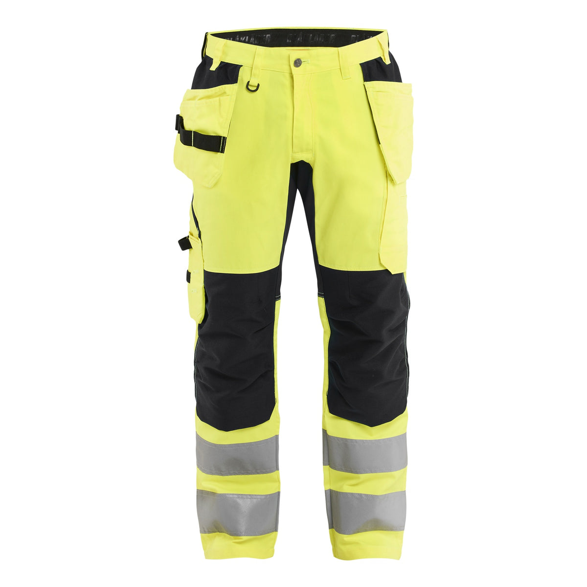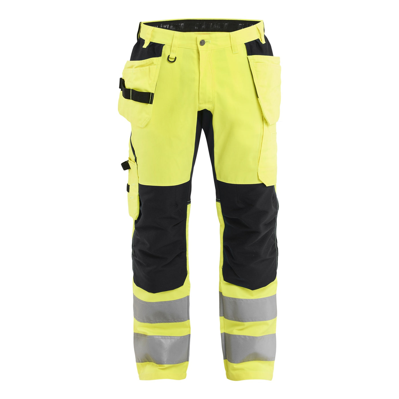 BLAKLADER 15521811 | Hi Vis Trousers with Stretch Hi Vis Reflective Work Trousers Men - Class 2 Visibility - C44 / Hi-vis yellow/navy blue