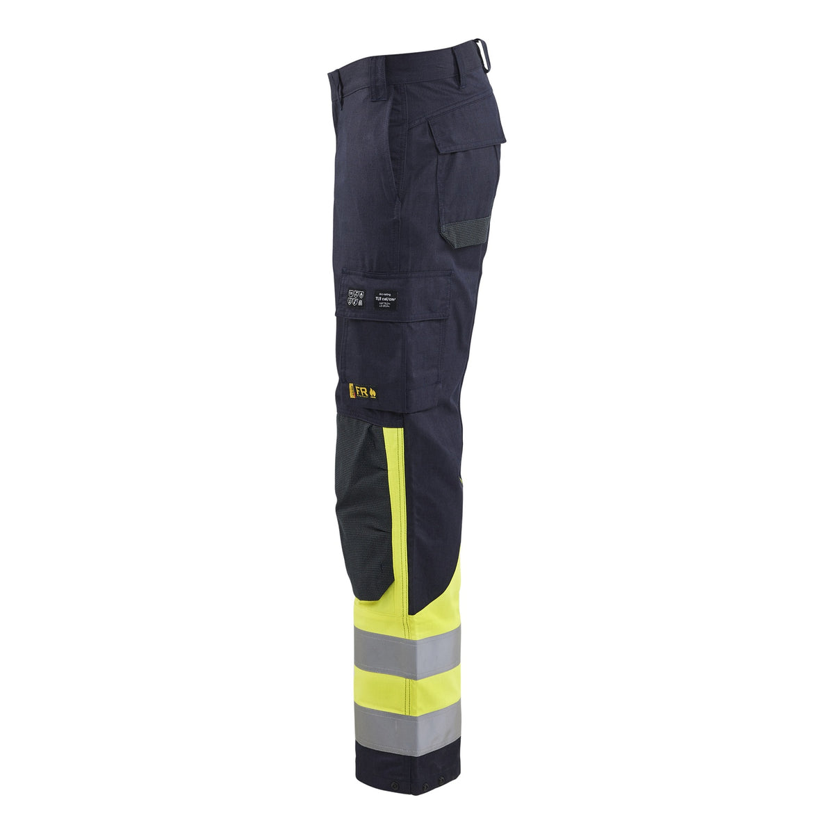 BLAKLADER 14881512 Multinorm-Arbeitshose mit eingebautem Schutz, Warnschutz, reflektierend, Herren – flammhemmend - C44 / Navy blue/Hi-vis yellow