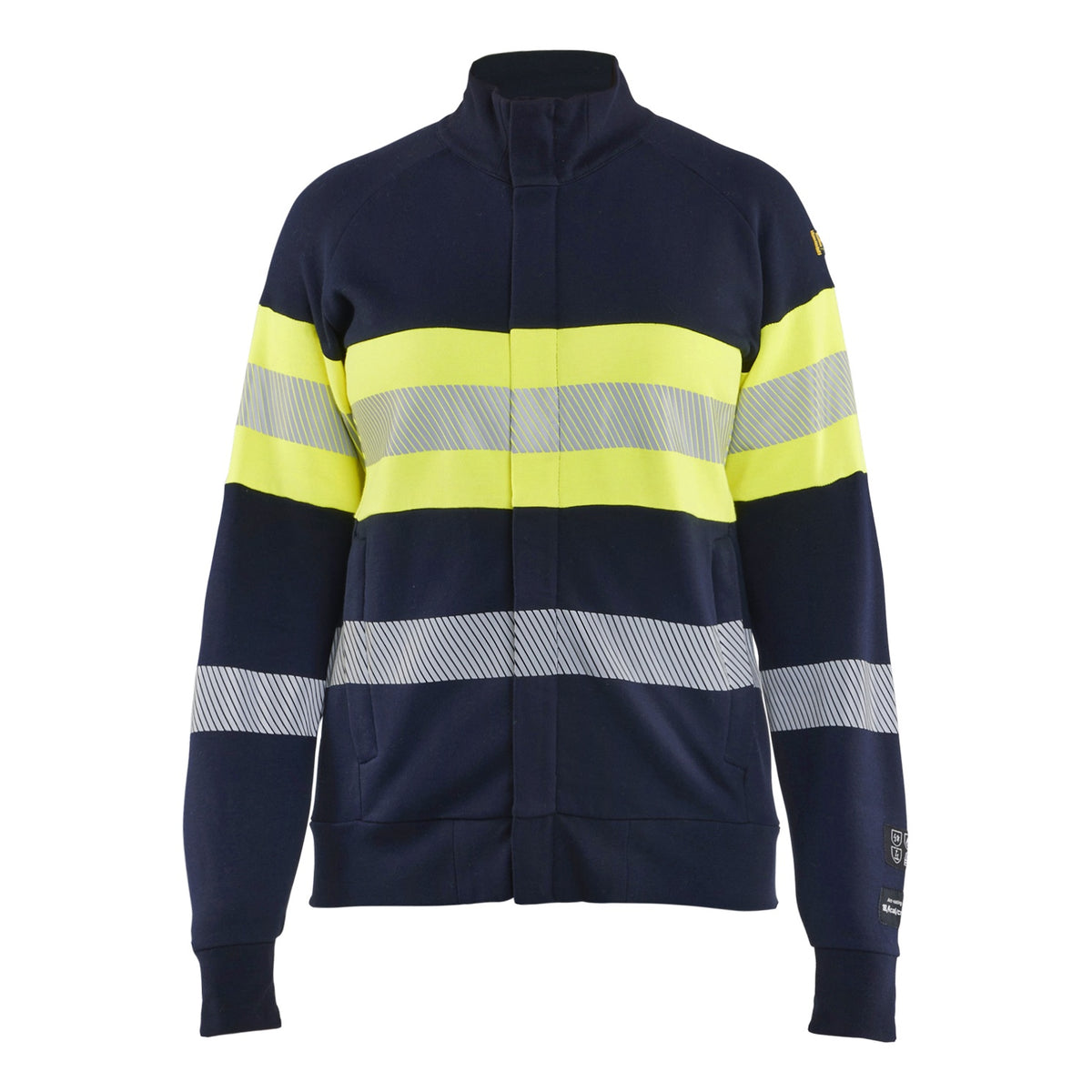BLAKLADER 34721762 SWEATSHIRT MULTINORME HAUTE VISIBILITÉ FEMME À FERMETURE ÉCLAIR Sweatshirt de travail zippé haute visibilité réfléchissant FEMME - Ignifuge - XS / Navy blue/Hi-vis yellow